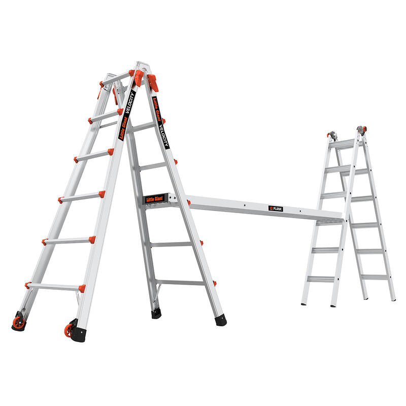 Why carry multiple ladders when you can just carry one? The Velocity is a multi-position articulating ladder that can be set up as an A-frame ladder, extension ladder, staircase ladder, 90-degree ladder or trestle-and-plank* scaffolding. Easy-to-use Rock Lock® adjusters move the inner section of the ladder to get the reach you need.