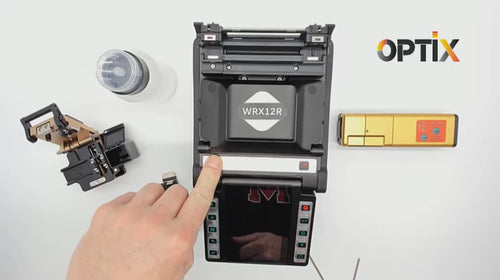 The Optix America WRX12R ribbon fusion splicer provides dependable splicing for both ribbon and single fiber optic cables, including 250um rollable ribbon fiber. This rugged and durable unit has an IP52 Ingress Protection Rating. Featuring SMART arc control technology, the WRX12R automatically adjusts the arc value based on the number of fibers being spliced and the quality of the fiber cleaves. It also utilizes PAS LED technology for fiber alignment, eliminating the need for mirror adjustments and cleaning. The complete kit includes a precision cleaver, thermal stripper, 12f fiber holders, optional 250um or 900um single fiber holders, V-groove cleaning tools, and an 840mAH high-capacity battery that provides over 240 splicing and heat cycles. Guaranteed stability and splicing performance under most environmental conditions, the WRX12R ribbon fusion splicer will be your trusted tool in the field. Standard features include automatic arc calibration, fast heating, low loss, 13s splice time, force arc, 100X magnification, reverse monitor, GPS tracking, and quick splice mode.